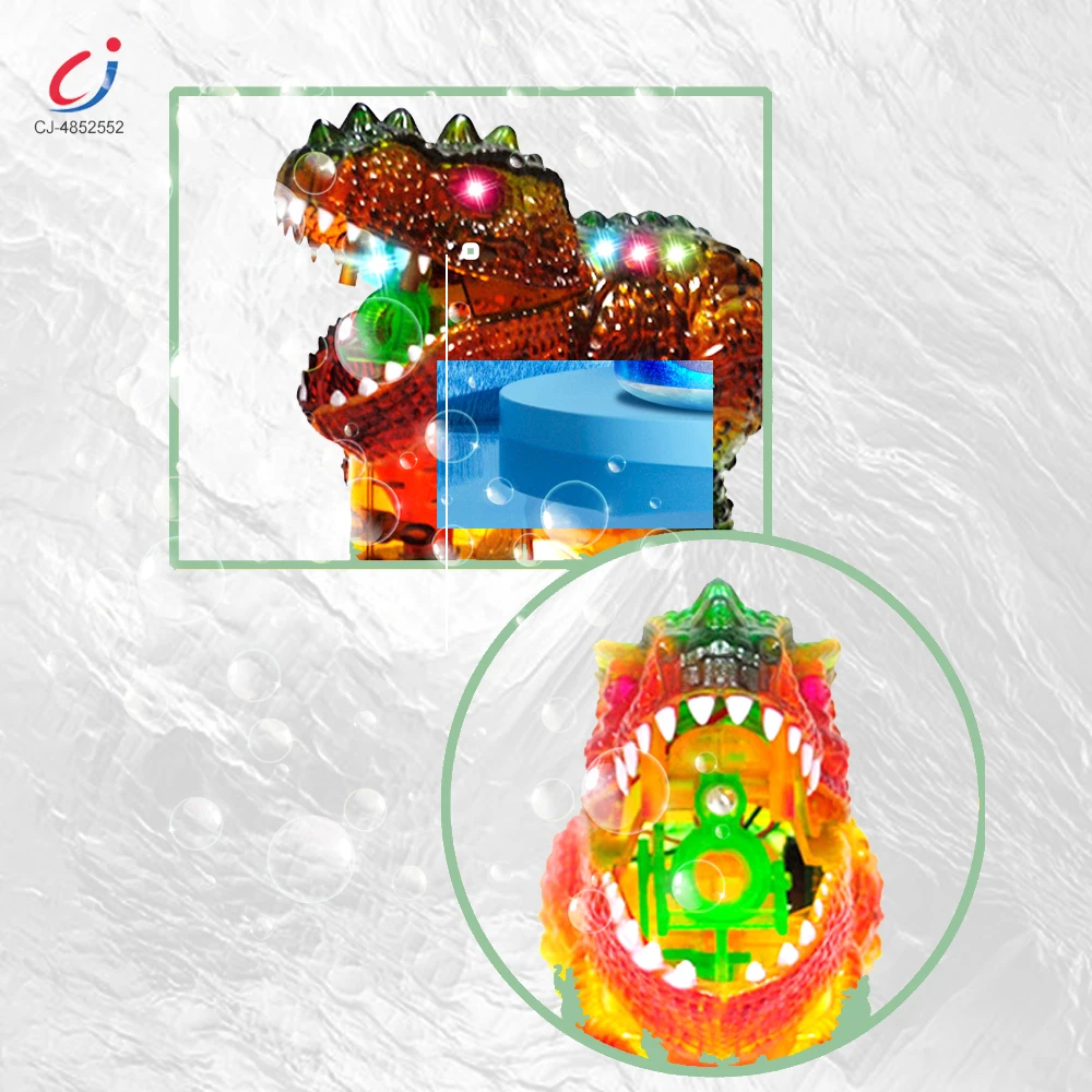 Chengji Light Automatic Bubble Blower Maker Gun Kids Toy Transparent Gun Dinosaur Bubble Toys Battery Operated
